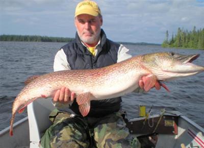 The guys looked down on me as I stretched that tape with both hands across the seat. It was not easy, but finally I said “It’s just shy of 46”. Wow, 46.” said Gary. “46 Wahooooo” a collective shout went out. Did you get any photos? Yup. Lets take a look, I want to see that fish!!! I had to get my glasses, so Gary took my digital Nike and the little screen soon revealed the first photo of the great fish. We all crowded around as Gary flipped through the 4 photos of the fish. It was a tiny screen, but that fish looked HUGE. “What a monster pike!” Doug said That’s UN-believable!! Everyone was shouting, and pumping me on the back, like I had just scored the winning touchdown. I started getting teary eyed and emotional. Not used to all this attention. Oh well. Greg was yelling your going to be Famous Mike, and Mike C chimed in “Famous Mike!! From now on you’ll be Famous Mike. You’ll be famous!!! That’s your name from now on, as some of the guys were dancing around doing jigs. Famous Mike!!!” and well, that’s how I became Famous Mike. Since we had two Mikes in our group they were trying to tell us apart anyways. So that was it.